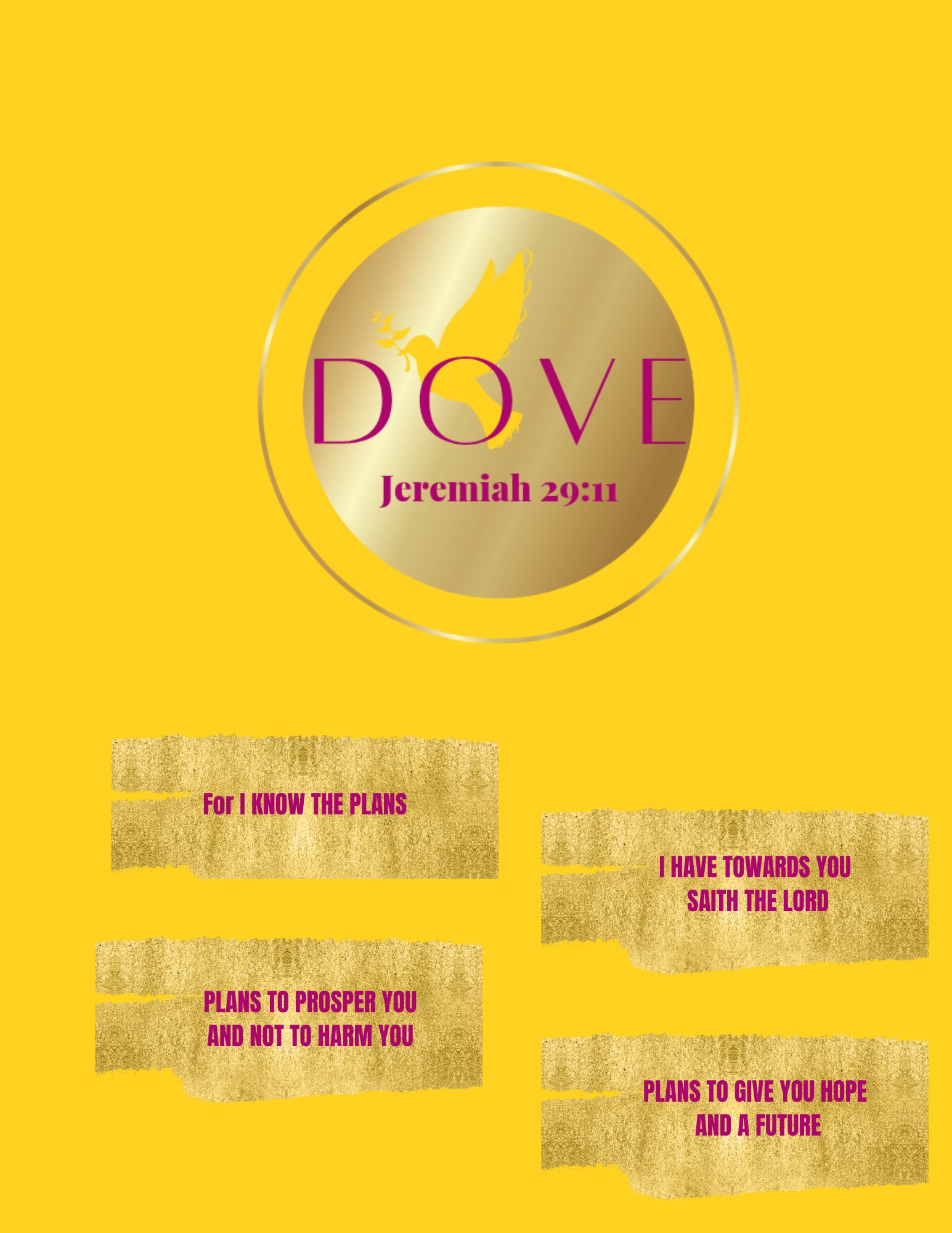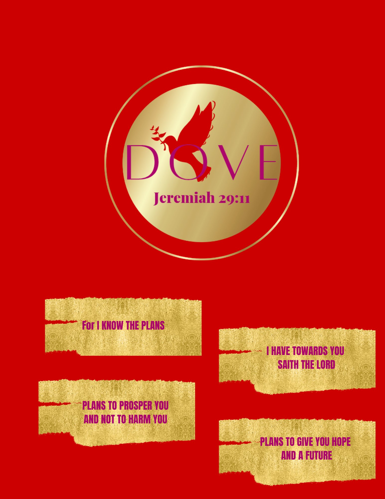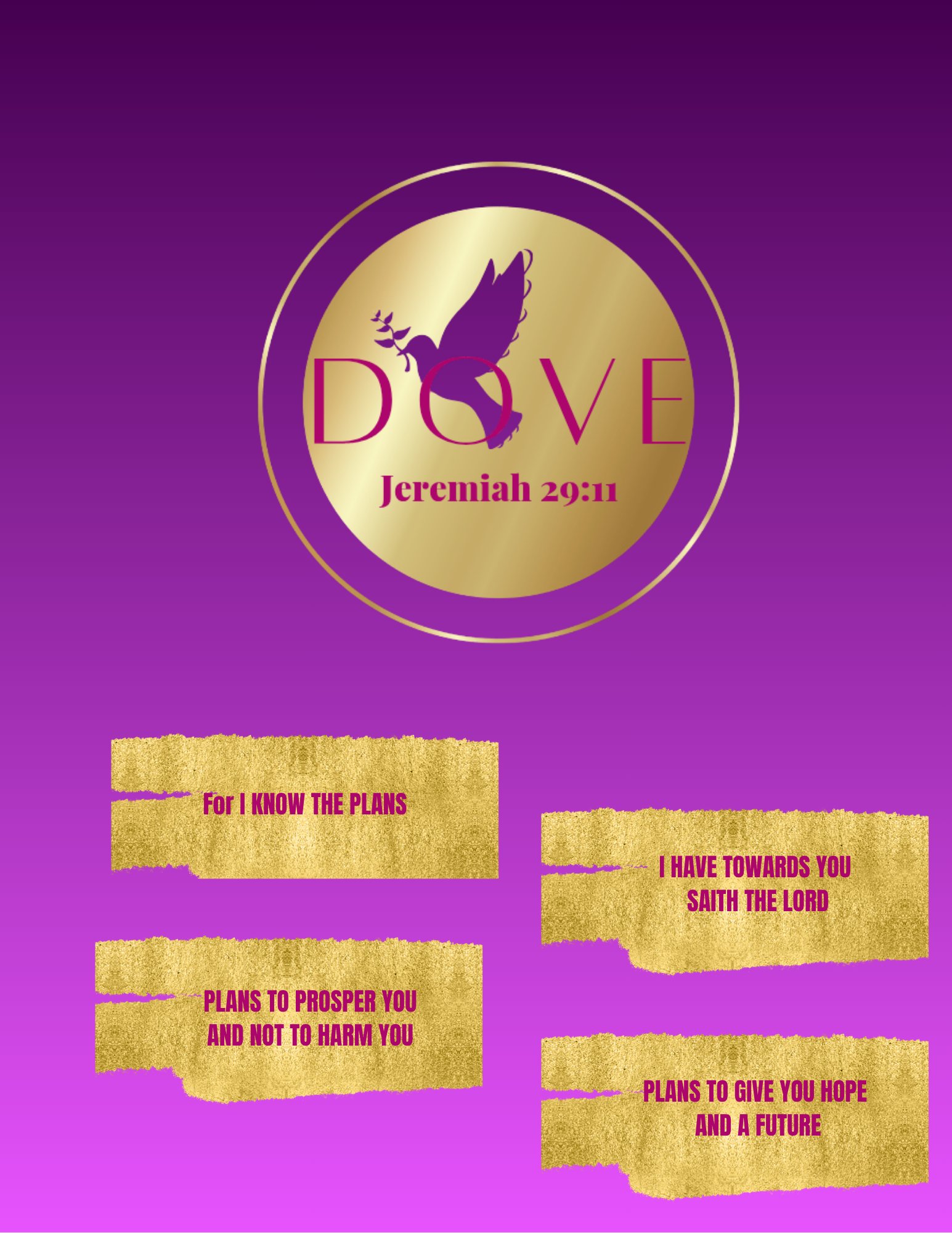 This beautifully crafted college-ruled spiral notebook blends inspiration with elegance, making it the perfect companion for journaling, studying, dreaming, or daily reflection. The cover features a soft and luxurious gradient that radiates warmth and femininity, crowned with our DOVE logo and the scripture Jeremiah 29:11, symbolizing hope, purpose, and divine guidance.